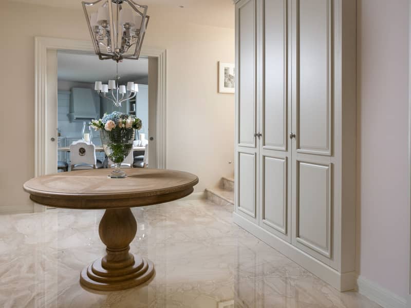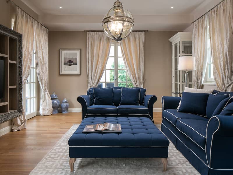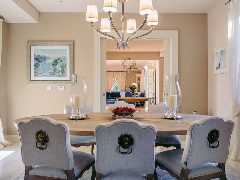 The interior features a modern and elegant design with high-quality finishes. A spacious living room, fully equipped kitchen, and dining area are directly connected to the outdoor space, allowing for plenty of natural light and a comfortable living experience.
